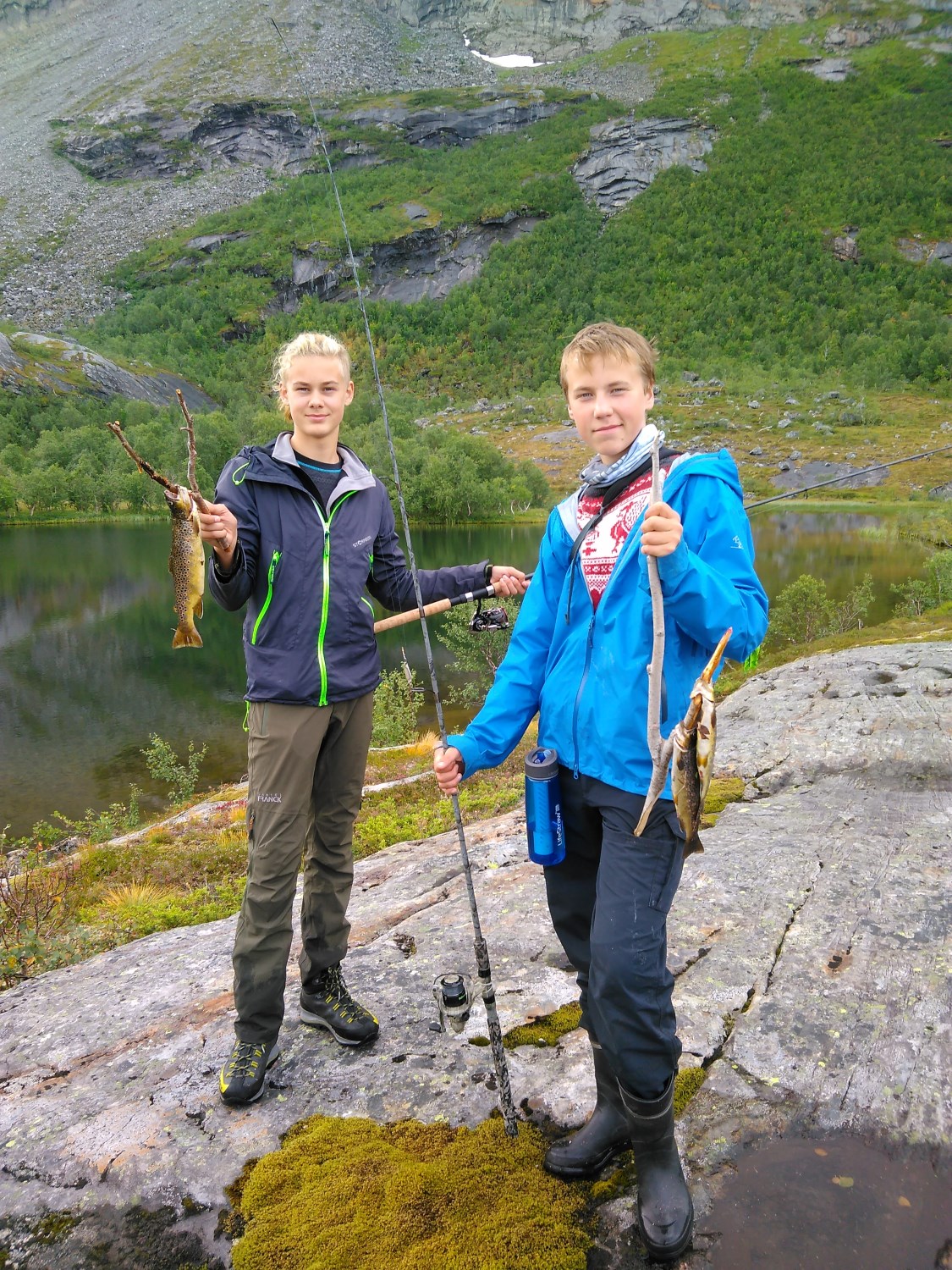 og fisket lengre opp på fjellet og der hadde vi fiskekonkurranse. Da vi kom
