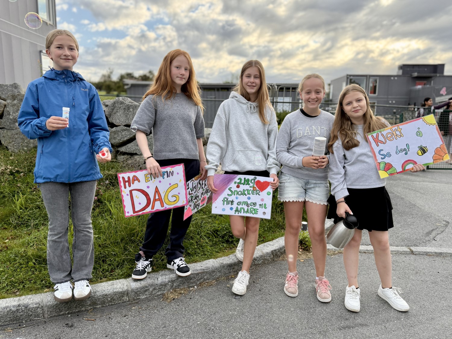 I skolegården ble det arrangert ulike fellesleker, dans og musikk. Voksne og barn ble møtt med fine plakater, såpebobler og de kaffitørste voksne fikk en kopp kaffi på veien.