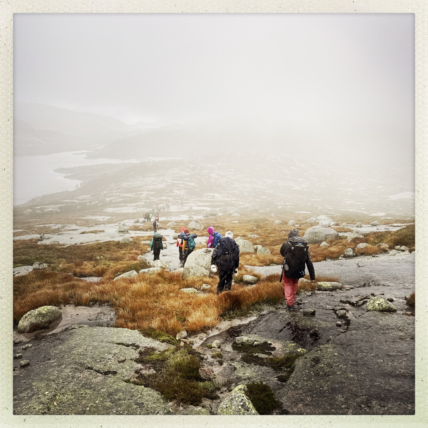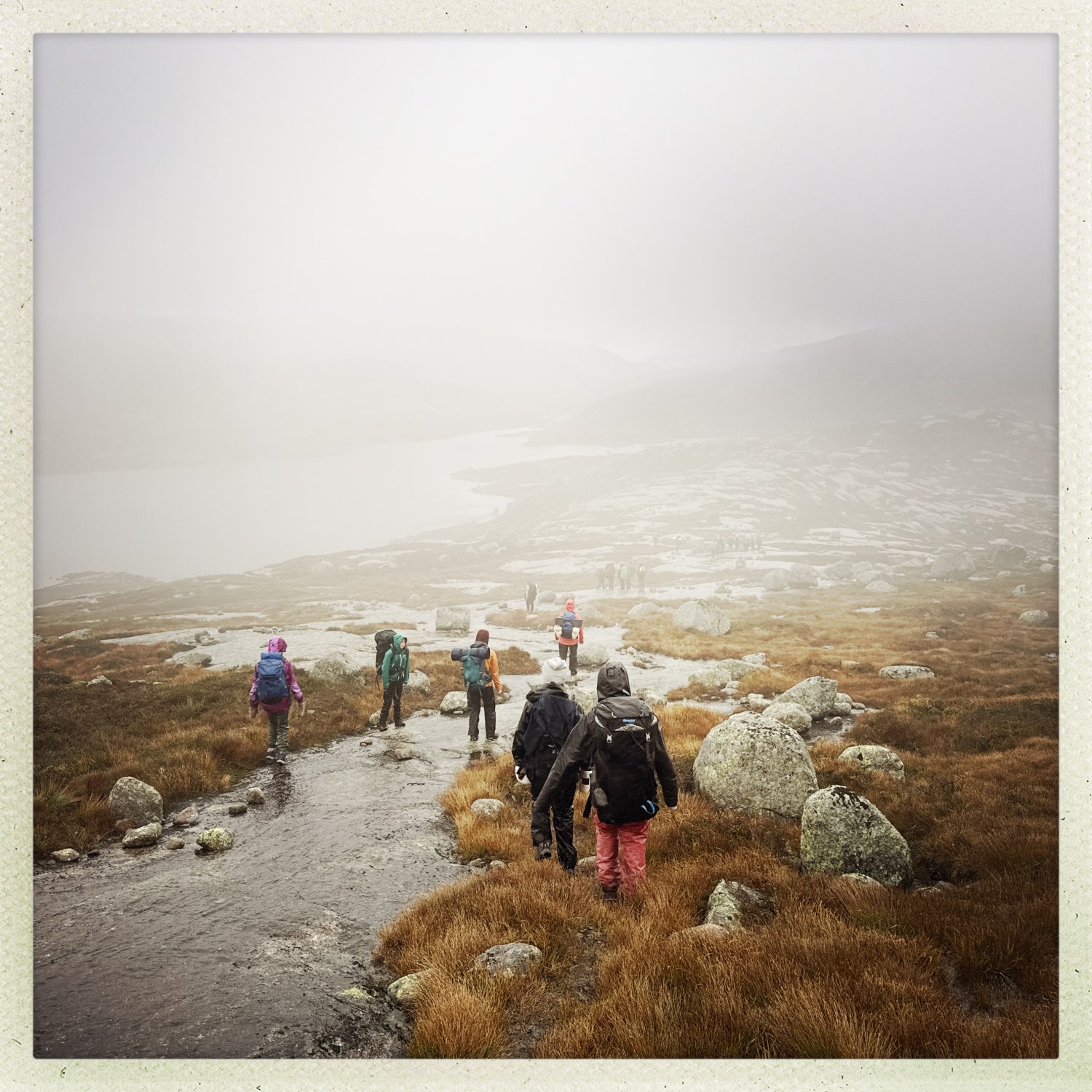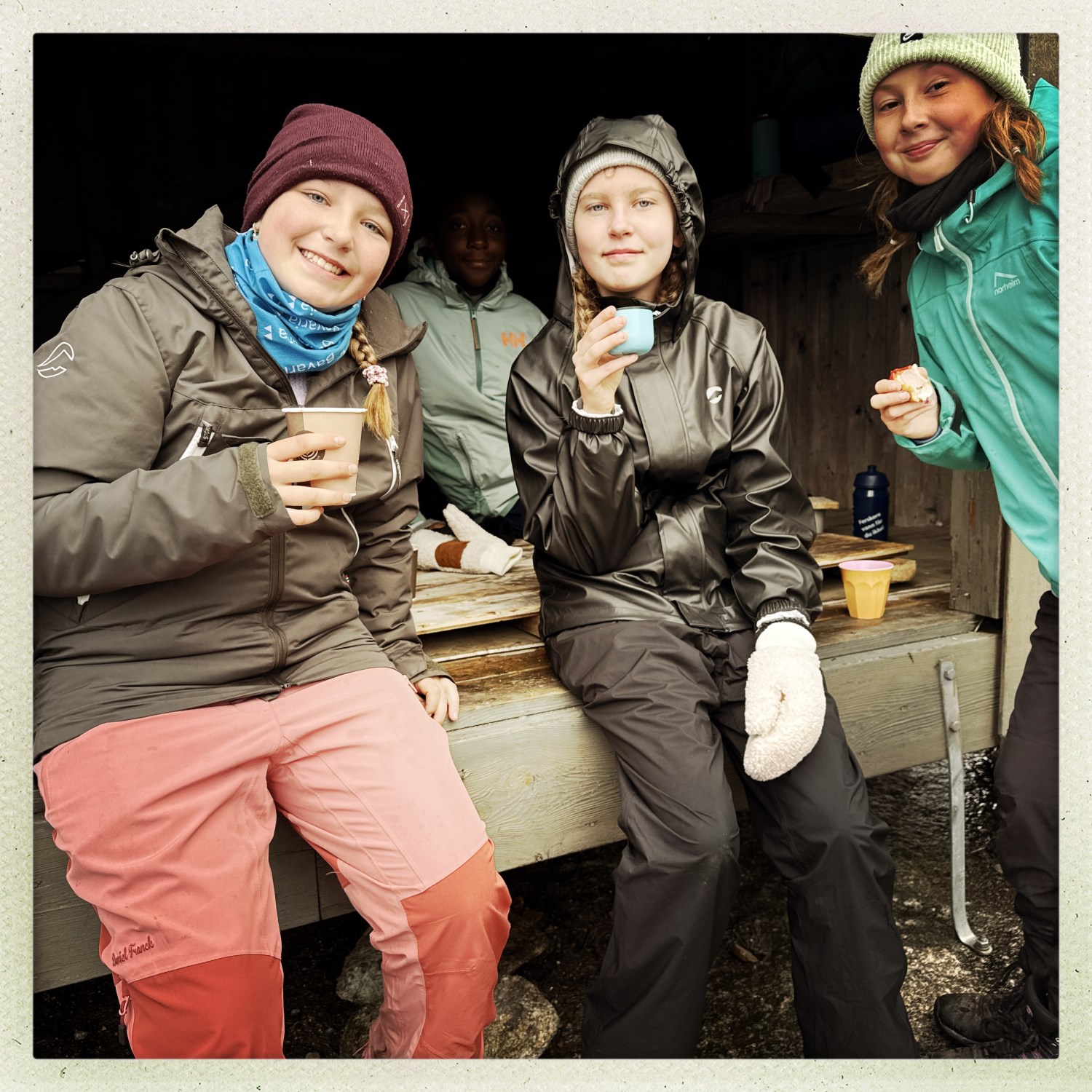 Fjellgjengen våknet til tykk tåke. Noen hadde sovet godt, noen hadde vært litt kalde, men alle hadde sovet litt. Vi trakk garn, stekte fisk på bålet og drakk varm blåbærsaft. Gjengen på skolen gikk lang fjelltur og fikk se både rype, hare og lemen. Pizza, filmkveld og nattbading siste kvelden før hjemreise.