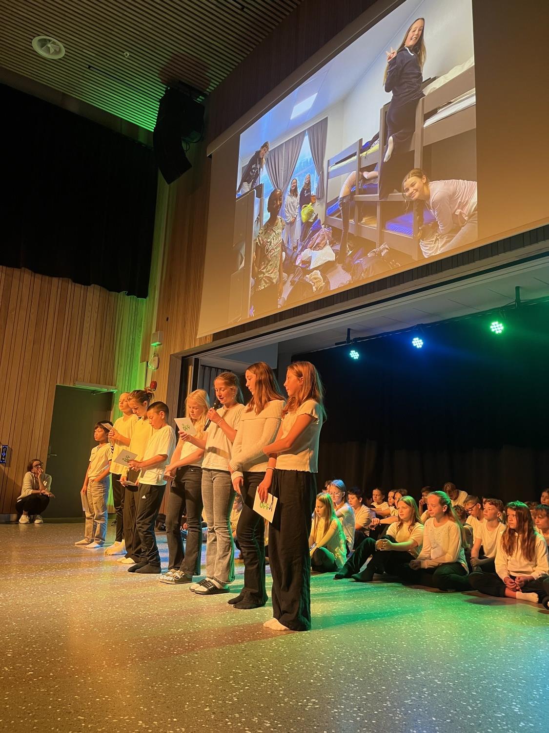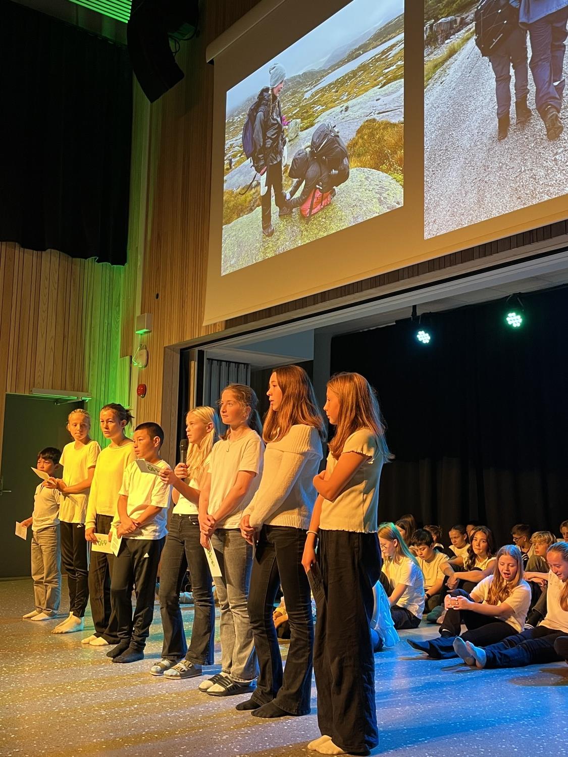 Det ble vist skuespill fra modige og morsomme voksne, dyktige musikanter spilte inngangsmusikk, BLIME-dansen ble vist på skjermen og 7.trinn avsluttet samlingen med flott fellessang. Kjekt å være i gang med samlingene.