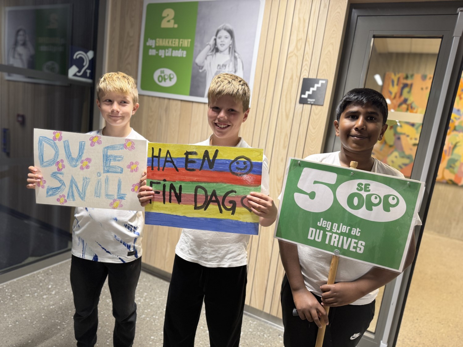 Temaet for samlingen var: "Jeg ser opp når jeg møter deg". 7.trinn har vært på leirskole og fortalte om hvordan SE OPP var med på å prege leirskolelivet på en positiv måte.