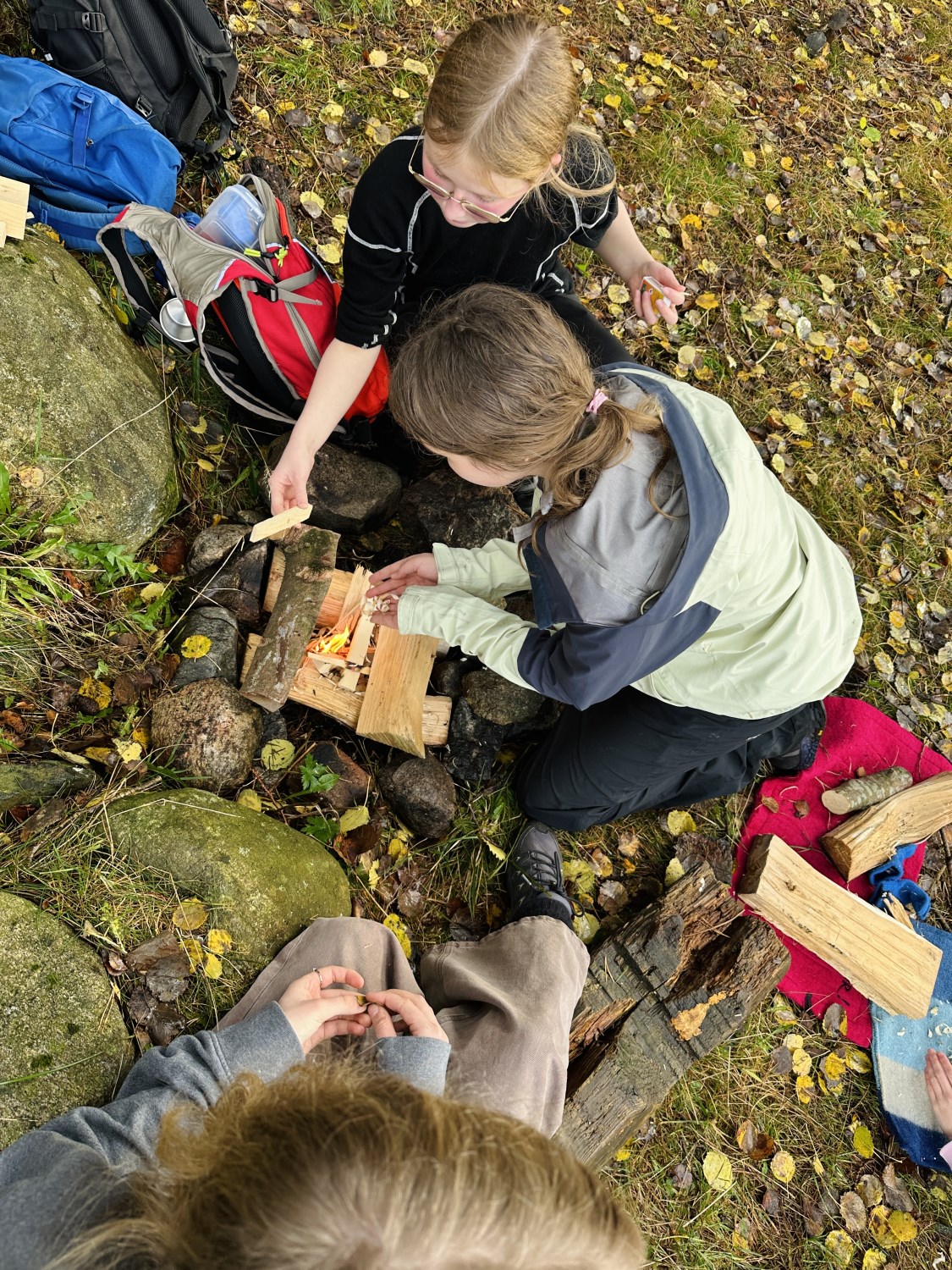 Det skulle lages bål, pinnebrød, pølsepinner, memoryspill i naturen, innhegning til dyr og mye mer.