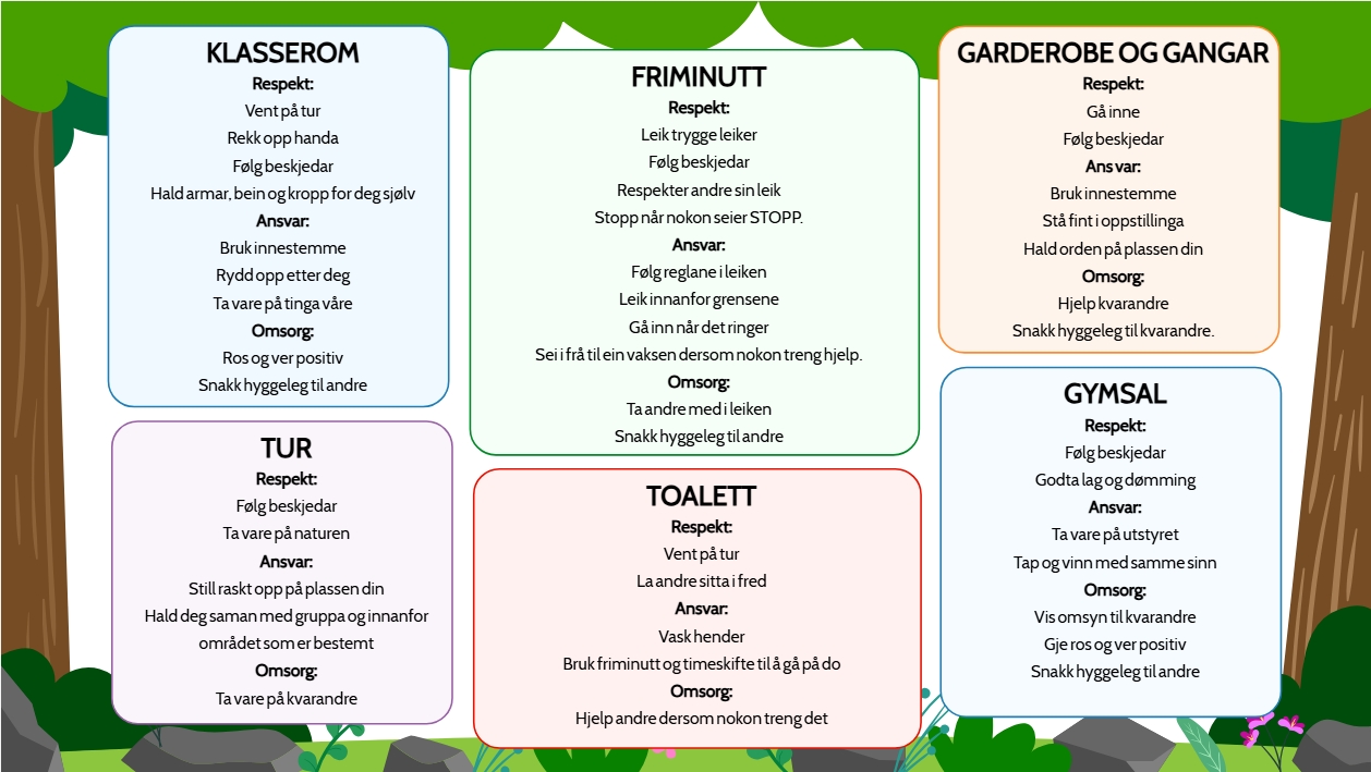Her finn de Sjernarøy oppvekstsenter sine skulereglar i tillegg til lenke til forskrift om skulereglar i Stavanger kommune